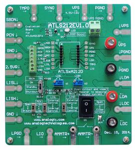 The evaluation board ATLS212EV1.0 is designed for evaluating these laser drivers ATLS1A212D, ATLS2A212D and ATLS3A212D conveniently.